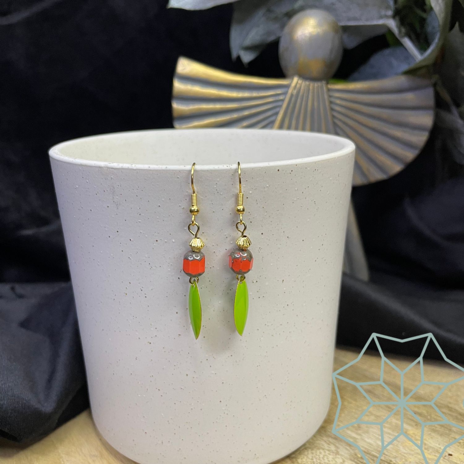 Élégantes et légères, ces boucles d’oreilles associent une douce perle en verre à un pendentif feuille pour une touche délicate et naturelle. Les finitions dorées apportent une note lumineuse tout en restant discrètes.